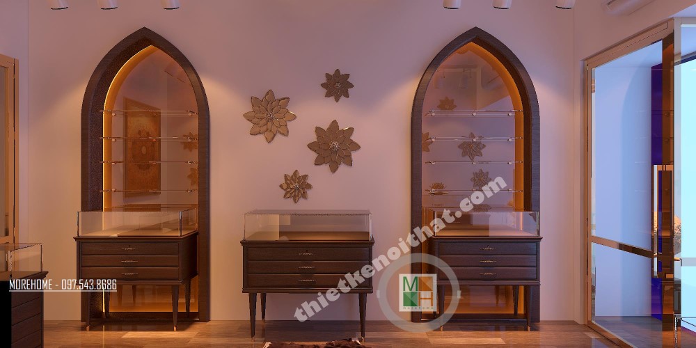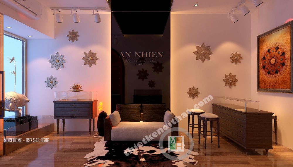 Thiết kế nội thất showroom đá phong thủy An Thiên phong cách Ấn Độ ấn tượng và thu hút ánh nhìn. Bạn có nhu cầu thiết kế showroom hãy liện hệ với chúng tôi. ĐT: 0975438686