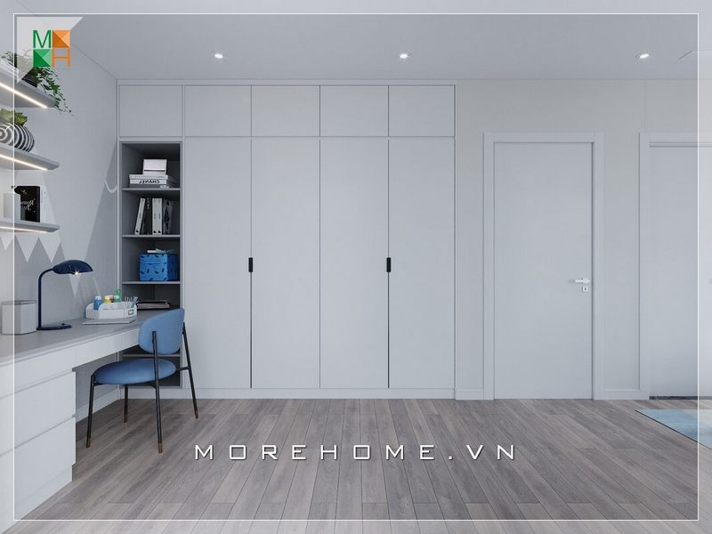 Khoảng không gian thoáng đãng được bố trí hệ thống tủ đựng hiện đại thuận tiện cho việc giặt và phơi quần áo