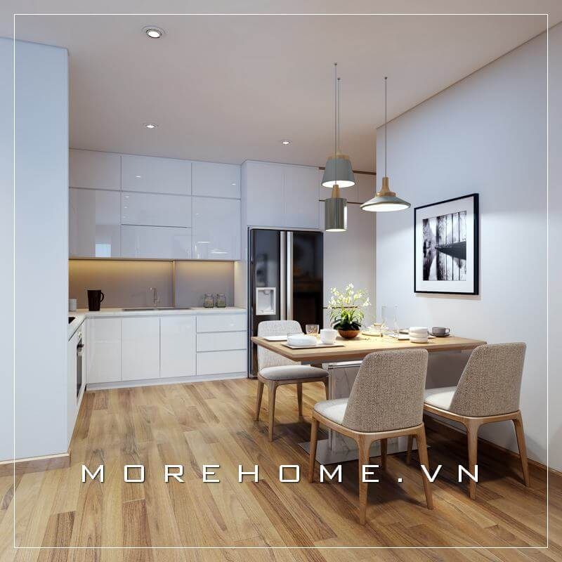 Mẫu tủ bếp gỗ acrylic màu trắng hiện đại cho phòng bếp chung cư