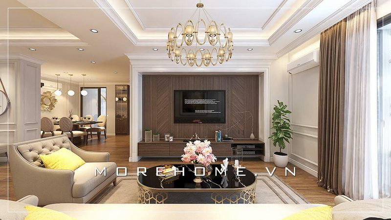 Thiết kế phòng khách sang trọng với nội thất tân cổ điển ấn tượng, cao cấp