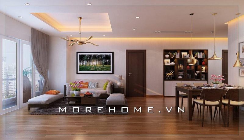 Nội thất phòng khách chung cư với những đường nét thiết kế nhẹ nhàng, sự kết hợp tinh tế giữa không gian, vật dụng, ánh sáng và màu sắc, không gian tiếp khách của gia chủ trở nên sinh động hơn, sang trọng và thanh thoát hơn