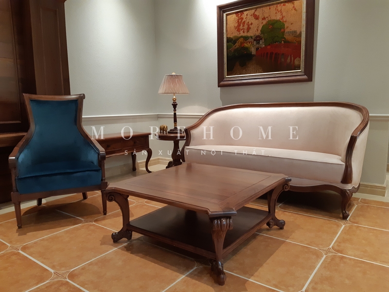 Thực hiện việc lắp đặt bàn trà vuông gỗ óc chó tân cổ điển để cung cấp các tiện nghi và làm nổi bật độ thẩm mỹ của không gian.