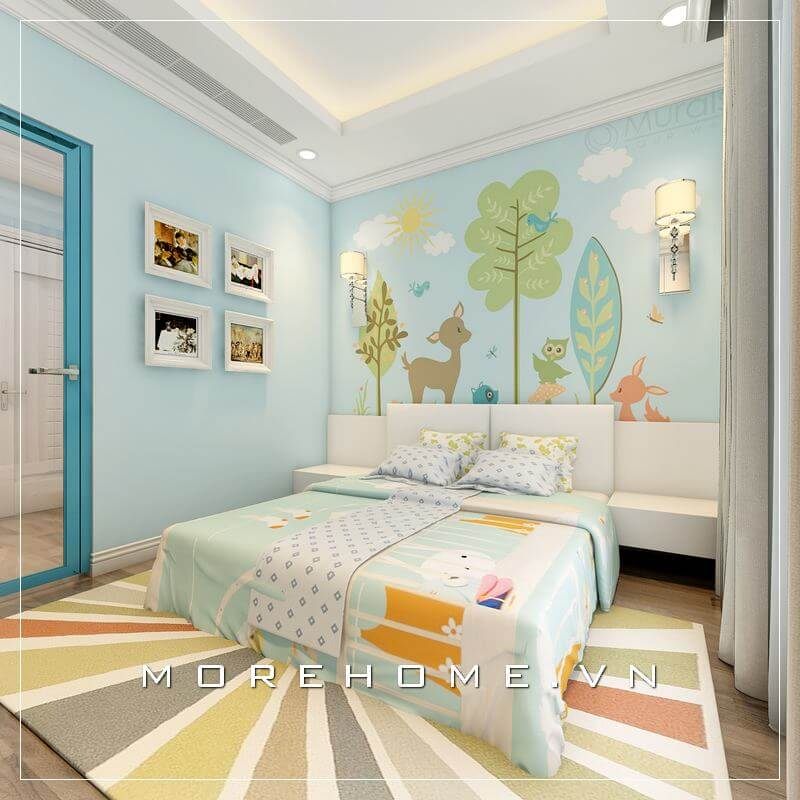 Trang trí nội thất phòng ngủ của trẻ em bằng các tranh dán tường con vật sẽ góp phần tạo nên sự ấn tượng và thích thú cho các bé.